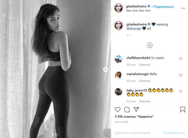 Известная модель из Victoria’s Secret Жизель Оливейра впечатлила фигурой в наряде для йоги Популярная красотка поделилась новыми фотографиями в своем Инстаграм. На них Жизель позирует в простом, но от этого не менее соблазнительном образе. На модели короткий спортивный топик и черные штаны для йоги.
