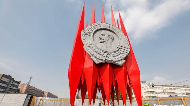 На площади Первой Пятилетки на Уралмаше завершаются работы по реконструкции Краснознаменной группы. Исторический памятник практически готов. На постаменте установлены стилизованные ярко-красные железные «знамена», которые поддерживают орден Ленина.