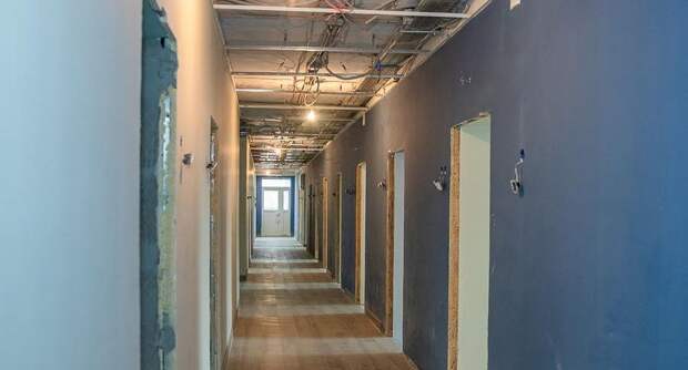 Поликлинику на 350 посещений в смену в поселке Старый Городок отремонтируют до конца года. Строительная готовность объекта достигла уже 50%. Сейчас строители завершают обустройство кровли, на втором этаже продолжаются сантехнические и электротехнические работы.