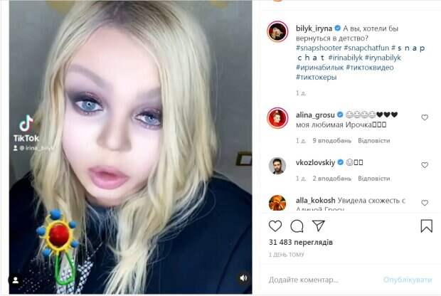 Ирина Билык применила специальный фильтр для видео, который сделал из нее практически ребенка, правда с ярким макияжем. «Почему-то похожа на Алину Гросу в четыре года. Вот так вот с родственниками бывает», - говорит певица на видео. Отметим, пользователи Сети восхищаются тем, насколько Ирина Билык похожа на свою крестницу - Гросу. «Моя любимая Ирочка», - прокомментировала кадры Алина. «Реально похожа