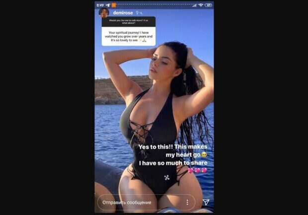 Лишь приемы у специалиста помогли звезде полюбить себя. Сейчас Деми популярная модель с 15,7 миллионами подписчиков в Инстаграм. Шикарная девушка регулярно балует своих поклонников горячими снимками и активно с ними общается. В этот раз красотка разместила фото в купальнике с пикантным декольте на завязочках. Большая грудь искусительно выпирала из него и притягивала взгляд. Черная ткань обтянула тонкую талию, а пикантные вырезы, тоже на завязочках приоткрыли виды на пышные бедра. Звезда взялась за влажные волосы, которые развеял ветер. Она невинно опустила глаза и приоткрыла губы. Пользователь сети написал, что следит за звездой давно и видит, как она развивается, и в итоге признался, что ему приятно видеть это. "Это заставляет мое сердце биться чаще, чем можно представить", - написала Роуз. Фото не собрало много лайков и комментариев в открытом доступе, ведь в сторис нет такой возможности. Напомним, Деми Роуз позировала полностью без одежды, прикрыв грудь руками. Внимание поклонников модели было полностью сосредоточено на ее шикарных формах, и они написали много приятных сообщений в ее сторону. Напомним, Деми Роуз отбросила смущение, устроив прогулку в лаковом платье без белья. Как сообщала Politeka, Деми Роуз без белья засветила свою "сладость" в обрезанной футболочке. Также Politeka сообщала, что Деми Роуз пленила изгибами в прозрачной сеточке, насмотреться невозможно.