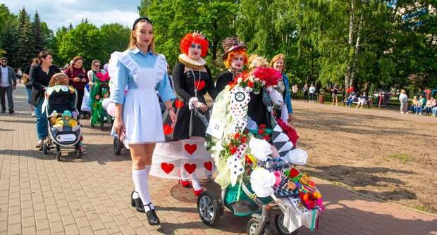 Парад колясок в 6-й раз прошел Юбилейном сквере в Химках ко Дню защиты детей. Участие в костюмированном шествии приняли 100 семей.