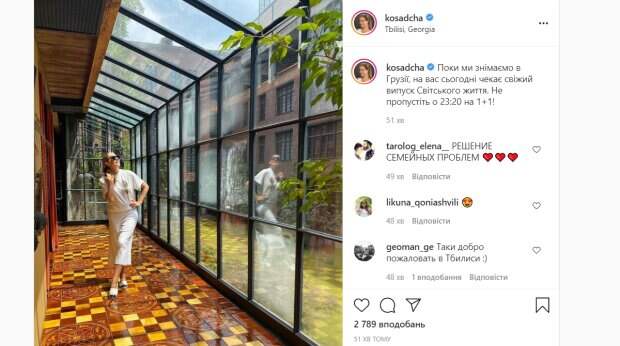 Известная украинская ведущая Катя Осадчая посоветовала украинцам смотреть "Світське життя", пока она на съемках в Грузии Как сообщает Politeka.net, звезда поделилась новым постом на своей странице в Инстаграм. Его она посвятила своей поездке в Грузию, где ее встретил местный шоумен, звезда украинских шоу "Холостяк" и "Танці з зірками" Иракли Макацария.