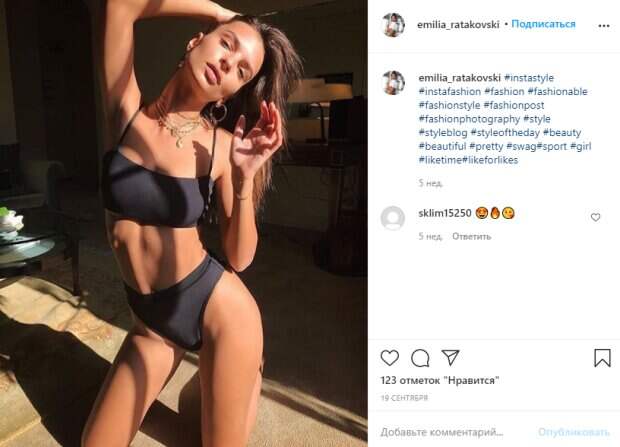При этом девушка не любит спорт. Так как ей не нравится посещать зал, она занимается на природе и ходит на пляж расслабиться. На фото Эмили видно, что она очень потянутая и фигуристая. Девушка знает, как работать над собой. Идеальные занятия, по мнению звезды, – это йога и хайкинг. Таким нагрузкам она уделяет несколько тренировок в неделю.А когда на носу важное мероприятие, то она и вовсе садится на жесткую соковую диету, выпивая лишь легкие смузи, девушка уверена, что так чувствует себя лучше и чистит организм. Судя по снимку Ратаковси, ей это и правда помогает, ведь чистая и идеальная кожа знаменитости является прямым подтверждением этого. Ранее мы писали, что Эмили Ратаковски показалась в необычном образе. На фото Эмили позирует в полосатом платье. Красотка дополнила образ стильными серьгами, а сама устроилась в довольно пикантной позе на стуле. Волосы были у модели собраны назад, а рядом можно увидеть вазу, в которой стоял цветок. Фанаты поставили "мне нравится" и не писали комментарии, но под другими публикациями постоянно радуют Эмили комплиментами: "Выглядит прекрасно, грация кошки", "слишком прекрасно слишком идеально", "Каково быть фаворитом Бога? Серьезно, ты великолепна! Не слушайте ненавистников, они просто завидуют.", " Ух ты глаза ... Яркие ... Вау яркая, как звезда в небе", "Горячий пирожочек". Напомним, Ратаковски без белья и стыда дала заглянуть себе под пиджак А еще Politeka писала, что Эмили Ратаковски устроила шальной отдых на яхте в черном бикини Также Politeka сообщала, что Эмили Ратаковски устроила жаркие шалости в модном мини-бикини