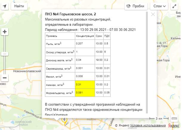 метр при допустимой норме в 0,05 мг/куб. метр. Эта же станция зафиксировала повышенный уровень аммиака — 0,31 мг/куб.метр при норме в 0,2 мг/куб.метр. скриншот ПНЗ №6 на улице Степана Халтурина, 10 выявил формальдегид на уровне 0,078 мг/куб. метр, ПНЗ №7 на ул. Декабристов, 183 — 0,102 мг/куб. метр. скриншотскриншот Данные представлены за период наблюдения с 13:00 29 июня по 07:00 30 июня. Накануне в Казани пять станций мониторинга выявили повышенный уровень формальдегида, одна — оксида углерода. По данным на понедельник, 28 июня, пять ПНЗ зарегистрировали превышение ПДК формальдегида, одна — аммиака.