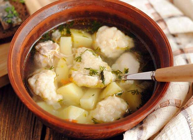 Куриный суп хорош своей простотой, но каждый раз класть в него одни и те же ингредиенты очень быстро надоедает. Самый распространенный ингредиент здесь лапша – ее то мы и заменим нашими сырными галушками и получим совсем другой вкус. Основа супа делается традиционно, варим куриный бульон и параллельно с ним делаем зажарку из овощей.
