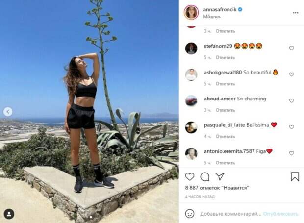 Чтобы продемонстрировать фигуру, звезда выбрала черный модный костюм, состоящий лишь их топика и коротеньких шорт. Вся «на спорте», актриса смогла доказать, что свои тренировки не забрасывала и сейчас активно тренируется тоже. Не секрет, что публичным людям приходится усиленно следить за собой, однако многие из них даже на отдыхе должны продолжать тренировки. Анна своим видом же порадовала сеть: «Прекрасная и роскошная