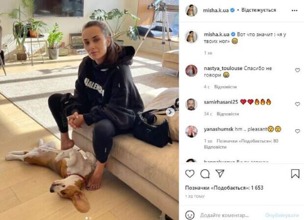 А сейчас Ксению пригласили судить на шоу "Україна має талант". Не забывает актриса и об Инстаграм, где делится с фанатами самым интересным. На новом фото Ксения была в толстовке и штанах, сидя на диване. Звезда играла с домашним любимцем, которая валялась у ног актрисы. На фоне можно увидеть интерьер роскошной квартиры. У Мишиной нашлось место даже для телескопа. "Вот что значит: "я у твоих ног", - написала Ксения. Фанаты поставили более 20 тысяч лайков и написали комментарии: "Спасибо, не говори", "У меня двое таких, обожаю", "Такая девушка. Грех не пасть", "Просто восхитительная красота", "Какой счастливый!.. Даже завидно!", "Какая ты Ксюша красивая". Напомним, "Холостячка" Огневич схлестнулась в эффектной битве образов с Ксенией Мишиной А еще Politeka писала, что "Холостячка" Мишина раскрепостилась перед камерами в одном топике и брюках Также Politeka сообщала, что судья "Україна має талант" Мишина поразила откровением о страданиях