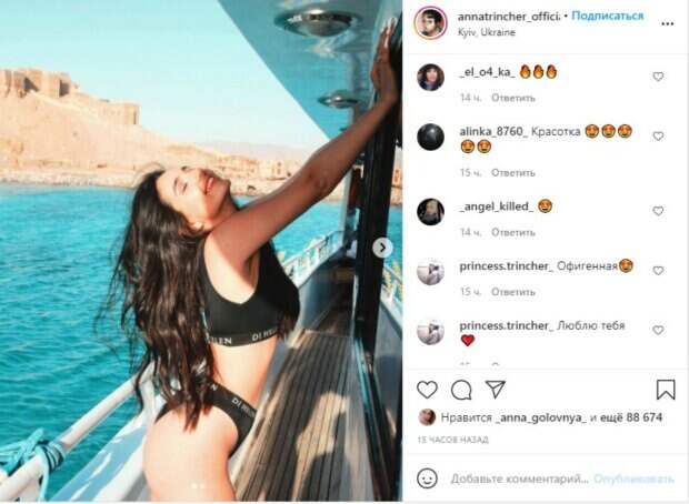 Популярная молодая актриса и звезда сериала "Школа" Анна Тринчер показала фигуру в черном стильном купальнике Известная молодая актриса любит рассказывать о себе и личной жизни. Сейчас Анна хорошо проводит время дома, но это не мешает ей делиться архивными фото и не только показывать фигуру в пикантном черном купальнике на резинке, но еще и говорить об интересующих ее вещах.