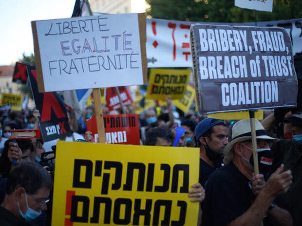 В Израиле проходят массовые протесты против правительства Нетаньяху. Причина протестов – недостаточная помощь государства местному населению в условиях пандемийного кризиса. Больше всех страдают самозанятые израильтяне и владельцы малого бизнеса – им катастрофически не хватает даже тех 2000 долларов, которые одобрило правительство Нетаньяху.