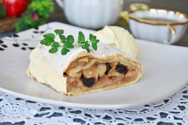 Энергетическая ценность на порцию Белки Жиры Углеводы 1,8 г 3,71 г 28,59 г Яблочный штрудель — это австрийский десерт, который подают почти в каждом кафе мира. Этот десерт давно покорил многих гурманов и сладкоежек. Нежная и сочная яблочная начинка, тонкое и хрустящее тесто, сладость изюма и тонкий аромат ванили… Чтобы приготовить нежный венский штрудель, нужно […] The post Яблочный штрудель – простой рецепт изысканного венского рецепта.