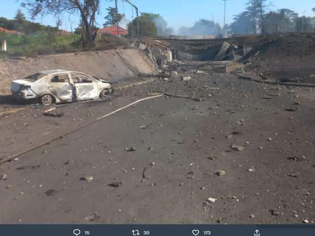 По меньшей мере девять человек погибли и еще несколько получили ранения в результате взрыва бензовоза в Южно-Африканской республике (ЮАР), 25 декабря сообщает Anadolu Agency. Представитель компании по управлению дорожным движением Саймон Зване сказал, что цистерна застряла низкоуровневым мостом, после чего взорвалась.