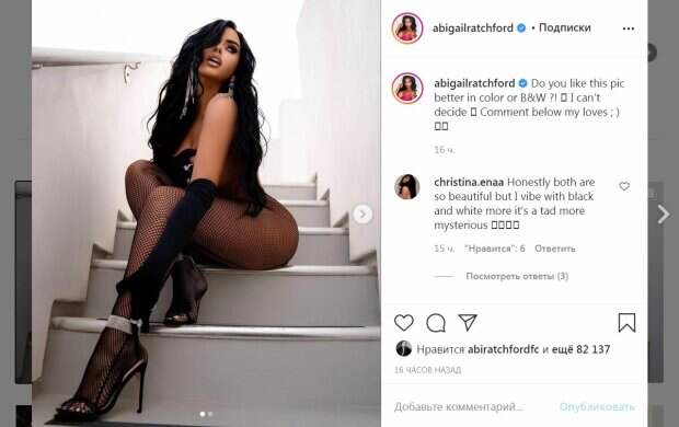 Красотка показала бюст, но при этом кокетливо прикрыла его рукой. Сквозь сеточку было видно обнаженное тело, что придавало образу особой пикантности. Красотка обула босоножки на шпильках, а сверкающие браслеты обвили стройные ножки, подчеркнув их великолепие. Модель распустила длинные волнистые локоны, которые околдовали своей идеальностью. Фото было представлено в разных цветах. "Вам больше нравится это фото в цвете или в ч/б?!