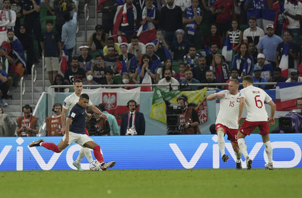 Нападающий сборной Франции Килиан Мбаппе дважды отличился в игре 1/8 финала чемпионата мира-2022 с Польшей.