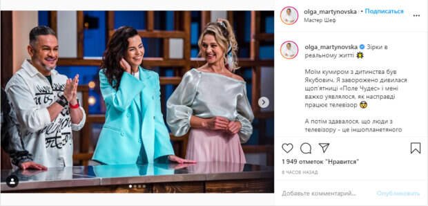 Троицу запечатлели, когда они над чем-то сильно смеялись, Эктор аж покраснел. В подписи Мартыновская поделилась детскими воспоминаниями - о том, какими ей казались звезды. Ольга сделала комплимент знаменитостям, в том числе и Каменских, говоря, что они на самом деле скромные, благодарные и приветливые люди. "Звезды в реальной жизни