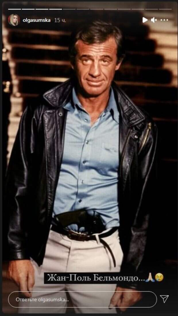 Украинских артистов потрясло известие о смерти легендарного актера Актриса Ольга Сумская, певица Санта Димопулос и рэп-исполнитель Потап разместили в своих аккаунтах Инстаграм посты с выражением скорби, пишет Politeka.net. Так, Сумская опубликовала фото известного актера Жана-Поля Бельмондо, который скончался 6 сентября в возрасте 88 лет.