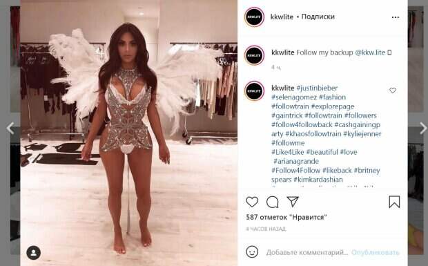 Ким надела белые кружева, которые едва ли скрывали грудь и самое интимное. Большая грудь впечатляла красотой и объемами, как и знаменитые бедра красотки. Звезда также была в маленьких кружевных трусиках, которые натянулись на крохотной бретельке на теле. Модель распустила волосы. Ее образ завершил макияж с акцентом на большие глаза - пышные ресницы увеличивали их. А пухлые губы были приоткрыты и подчеркнуты красивой помадой. За плечами красотки можно было заметить белоснежные крылья. Сверкающее украшение на шее и на теле привлекало внимание и смотрелось на Кардашьян просто фантастически. За четыре часа пост собрал почти 600 лайков и много комментариев. Пользователи сети написали в сторону соблазнительницы массу приятного, ведь ее фигура и внешность в целом, просто не может оставить равнодушным. "Ты просто ангел", - написал один из поклонников. Ранее мы писали, что Ким Кардашьян родилась в 1980 году в состоятельной семье Крис Дженнер – продюсера на телевидении и автора собственного шоу; и Роберта Кардашьяна - адвоката, который стал известен после защиты в суде своего приятеля, футболиста О'Джей Симпсона. Напомним, Ким Кардашьян устроила сеанс соблазнения, сжав фамильную гордость узким топом: "сейчас выпрыгнут" А еще Politeka писала, что идеальная Ким Кардашьян поиграла язычком, блеснув завидными размерами в бикини: "Распек до предела" Также Politeka сообщала, что Ким Кардашьян показала невероятные изгибы в черном латексе: "кажется, скоро треснет"