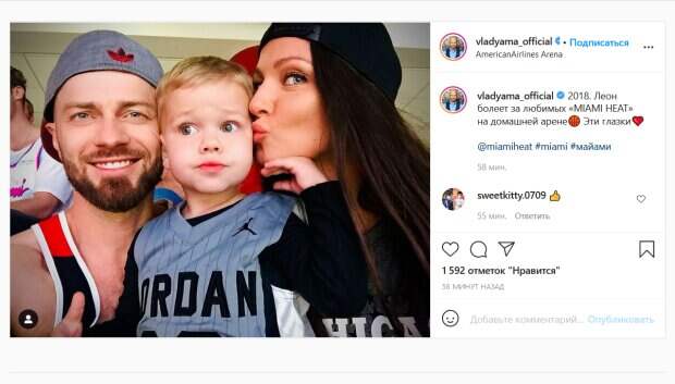 Как рассказал танцор, несколько лет назад его маленький сын смог посетить в США игру своей любимой баскетбольной команды. Яма опубликовал семейное фото, сделанное на стадионе. На снимке маленький Леон, одетый в форму команды, стоит в окружении своих родителей. Его отец рядом счастливой улыбается, а мать целует мальчика в щечку. «2018. Леон болеет за любимых «MIAMI HEAT» на домашней арене. Эти глазки», - подписал фото Яма. Его поклонники тут же отреагировали на пост танцора. «Передай привет», «Такой хорошенький», «Ну очень красивые глазки», «Супер», - пишут люди. Ранее мы писали, что Яма порадовал поклонников новым фото на своей странице в соцсети Instagram. Как оказалось, хореограф решил в очередной раз похвастаться поклонникам своей красавицей женой. Напомним, Влад Яма, не сдержав гордости, показал, чем его балует красотка-жена: "Как же мне повезло". Как сообщала Politeka, Яма из "Танців з зірками" растрогал украинок кадром с красоткой-женой, о таком мечтает каждая. Также Politeka писала, что Влад Яма из "Танців з зірками" снял на видео, как развлекается с женой наедине: "Раздали в Межигорье".