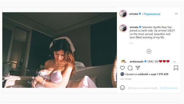 «Слай появился на свет 3/8/21 в самое сюрреалистическое, красивое и наполненное любовью утро в моей жизни», - трогательно написала звезда. Модель также не могла не поделиться с поклонниками снимком со своим малышом. На фото модель сидит на диване и держит малыша на руках. При этом, дерзкая Эмили не стала изменять себе, и на фото предстала обнаженной. Поклонники и другие знаменитости тут же принялись поздравлять новоиспеченную маму в комментариях. Отметим, что отцом ребенка стал муж Ратаковски, продюсер Себастьян Бир-Макклард. В прошлом месяце пара отметила 3 года со дня своей свадьбы. Любопытно, что на момент бракосочетания они были вместе всего пару недель. Добавим, что несмотря на то, что ребенка назвали Сильвестр, модель планирует не раскрывать его пол до 18-летия. По ее замыслу, ребенок должен сам с ним определиться. «Люди намного сложнее, и их определяют не гениталии», — поделилась модель. Напомним, Эмили Ратаковски засунула свои сладкие размеры в черное кружево: "Невероятная женщина". Как сообщала Politeka, кокетливая Ратаковски в полностью прозрачном плаще ослепила своими богатствами: "Все больше...". Также Politeka писала, что горячая Эмили Ратаковски едва не потеряла юбочку, переборщив с откровенностью наряда: "Никаких стеснений".
