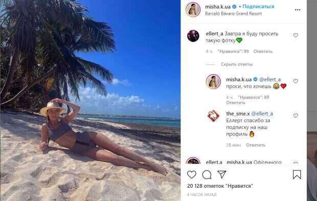 По словам актрисы, поездка стала для нее "путешествием души". "Валяться под пальмами, пить кокосы, сгорать на солнце, нырять в океане, кричать от жжения соли в глазах, объедаться фруктами, канючить у Эллерта красивую фотку, менять купальники, ходить босиком, не хотеть засыпать, хотеть рано просыпаться, чувствовать запах тёплого ветра, наслаждаться каждой минутой, наслаждаться любимыми ... Всё, что представляла теперь в моем пространстве! Люблю, благодарю", - сообщила Мишина в подписи к снимку с райским пейзажем. На опубликованном кадре она позировала, лежа на пляже в купальнике и шляпке. Снимок пришелся по душе Эллерту. "Завтра я буду просить такую фотку", - сообщил Александр, на что получил утвердительный ответ от своей любимой. "Проси, что хочешь", - написала Ксения. Поклонникам актрисы также понравился пейзаж и они не скупились на лестные комментарии. "Ксю, это очень сильно видно! Вы все такие счастливые! Такие молодцы, что именно таким составом поехали в ваше первое путешествие! У вас улыбка не сходит с лиц! Это и есть - счастье! Вы это заслужили", "Какая же вы классная семья.Вот так выглядит счастье...Очень рада за Вас", - писали под снимком Ксении. Напомним, "Холостячка" Мишина похвасталась роскошной квартирой, где поселилась с Эллертом: "Очень нестандартная" Как сообщала Politeka, избранник "Холостячки" Мишиной Эллерт не смог сдержать злость, видео: "Официальный м*дак недели" Также Politeka писала, что побледневшая "Холостячка" Мишина призналась в проблемах со здоровьем: "Очень паршиво…"