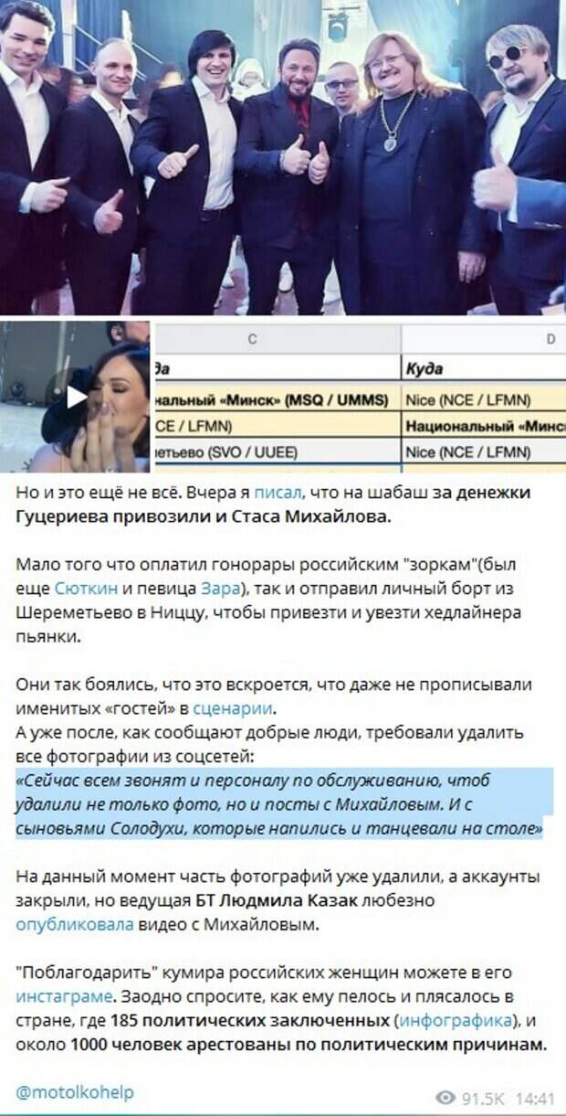 Присутсвовали на мероприятии звезды российской эстрады, среди них Стас Михайлов, Валерий Сюткин и Зара. Также пишут, что вечер посетил экс-солист беларусского ансамбля "Песняры" Валерий Скорожонок и другие артисты. Также сообщается, что гостей новогоднего приема, которые разместили фото и видео в Сети, просят удалить материалы. Некоторые кадры все же опубликовало белорусское издание Reformation. Во время новогоднего приема самопровозглашенный президент Беларуси вручил ордена, медали и благодарности государственным деятелям, артистам и сотрудникам СМИ. Вечер прошел в стиле "Вечеров на хуторе близ Диканьки". Лукашенко в своем выступлении, среди прочего, заверил, что никогда не отступит и что уверен в своей правоте. "Кушать хочется", - промментировали известие о віступлении Билік у Лакашенко пользователи Сети. Напомним, что размалеванная Ирина Билык ошарашила видом в постели, прикрывшись розами: "100 и 1 пластическая операция". Как сообщала Politeka, 50-летняя Ирина Билык обратилась к украинцам, огорошив видом в розовой шубке: "Не сдерживай..." Также Politeka писала, что полиция взялась за "развлечения" Билык в Харькове, открыты уголовные дела.