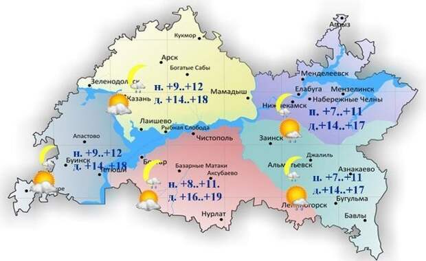 В пятницу, 16 сентября, в Татарстане прогнозируется облачная погода с прояснениями. Небольшой, днем местами умеренный дождь. Утром в отдельных районах туман. Максимальная температура воздуха днем составит +14—19 градусов. В Казани прогнозируется от +14 до +18 °С. В Набережных Челнах потеплеет до +14—17 градусов.