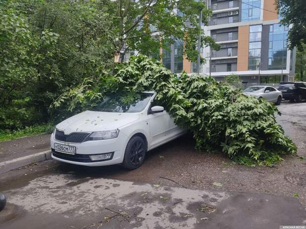 Несколько машин поврежденно из-за падения деревьев в Микрорайоне Северный на юге Москвы 20 июня сообщает ИА Красная Весна. С ночи в Москве бушует непогода, сначала в столице выпал небольшой дождь, а днем начался ливень. В некоторых районах Москвы был зафиксирован сильный порывистый ветер. Водители пострадали не только в микрорайоне Северный, но и районе метро Щелковская, где ветер унес со строящегося дома некоторые строительные материлы.