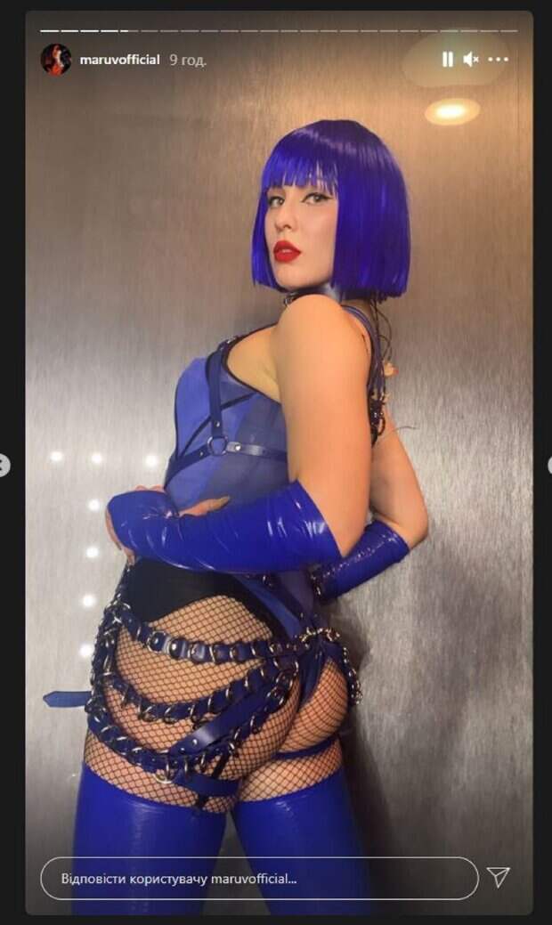 Известная певица MARUV (Анна Корсун) показала себя в свежем эпатажном образе На кадрах Анна показалась в латексном костюме, частично который был из прозрачной сеточки на ягодицах. Девушка обтянула себя ремнями, а образ дополнила стильными перчатками, париком и ярким мейкапом. Корсун повернулась спиной к камере, демонстрируя идеальные ягодицы, которые выпирали из наряда.