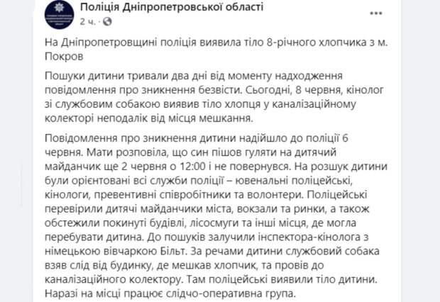 По словам матери, сын пошел гулять на детскую площадку около 12:00 в минувшую среду и не вернулся. На розыск ребенка были ориентированы все службы полиции – ювенальные полицейские, кинологи, превентивные сотрудники и волонтеры. Во вторник, 8 июня, немецкая овчарка по имени Бильт смогла взять след от вещей ребенка дома и привела полицию к канализационному люку, недалеко от места проживания Ибрагима. В канализационном люке сотрудники правоохранительных органов нашли тело ребенка. Сейчас на месте работает следственно-оперативная группа. Тело ребенка отправили на экспертизу, чтобы выяснить время смерти и проверить, нет ли на его теле следов насильственной смерти. На данный момент неизвестно, почему мать обратилась в полицию только через 4 дня после пропажи ребенка и что стало причиной его смерти. Полиция выясняет все обстоятельства трагедии. Напомним, что трагедией закончились поиски 14-летнего Никиты на Одесчине: что известно на данный момент. Как сообщала Politeka, харьковчанин вышел из больницы и бесследно пропал, нуждается в медпомощи. Также Politeka писала, что брошены все силы на поиски 21-летнего парня: отправился в воинскую часть и исчез, фото и приметы.