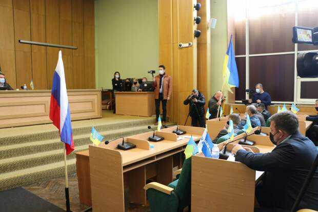 Настоящий переполох в украинских СМИ: в седьмую годовщину появления в Славянске отряда ополченцев Игоря Стрелкова на заседание городского совета внесли флаг России. Это сделал местный «активист» Василий Хоменко. Помимо российского триколора, он также развернул флаг Украины.