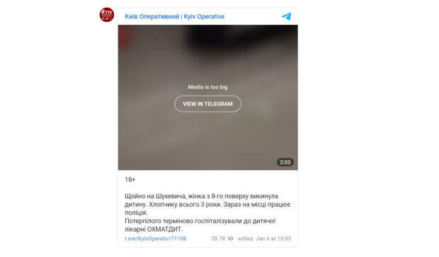 Женщина выбросила своего ребенка из окна многоэтажного дома Как передает Politeka.net, подробности случившегося сообщили в Telegram-канале "Киев Оперативный". "Только что на Шухевича, женщина с 8-го этажа выбросила ребенка. Мальчику всего 3 года. Сейчас на месте работает полиция. Пострадавшего срочно госпитализировали в детскую больницу Охматдет", - говорится в сообщении.