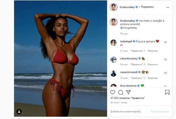 Об этом пишет Politeka.net со ссылкой на страничку знаменитости. "Уйти завтра убивает мое сердце", - написала красотка. Фанаты поставили почти 40 тысяч лайков и написали комментарии: "Останься навсегда", "Ты убиваешь меня от всего сердца", "Тревога в Копакабане", "Бомба", "Богиня", "Вау !!! Я лучше положу этот кусок торта", "Совершенно красиво", "Моя королева самая лучшая на свете", "Самая красивая русалка", "Как ты посмела быть таким идеальным", "Вы уверены, что у вас есть ребенок?", "Ариэль ничего с собой не получил!", "И наше сердце убивает видеть столько красоты". Мы писали, что новая жена 54-летнего актера Венсана Касселя Тина Кунаки свела с ума ярким летним луком. У себя в Инстаграм 23-летняя модель поделилась пикантным кадром. Красотка находится на отдыхе в теплых краях, откуда регулярно делится снимками в купальниках. В этот раз звезда решила немного приодеться, но от этого ее образ не стал менее соблазнительным. Напомним, молодая жена Венсана Касселя потянула завязочки трусиков, засветив кое-что интересное Также Politeka писала, что молоденькая жена Венсана Касселя подразнила «персиками», обтянув их полоской ткани А еще Politeka сообщала, что озорная жена Венсана Касселя подразнила мужа аппетитными формами в мини-бикини