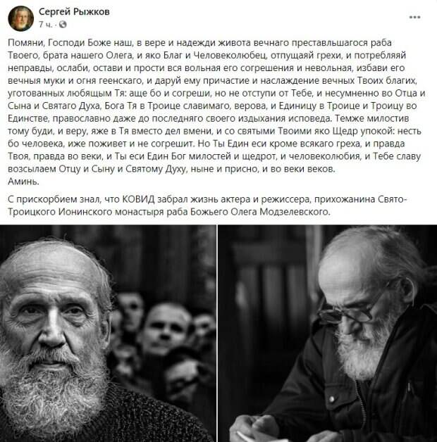 Китайский вирус пополнил список своих жертв еще одним известным украинцем От осложнений, вызванных опасной инфекцией, на 67-м году жизни скончался актер театра и кино Олег Модзелевский. Трагическую новость сообщил на своей странице в Фейсбук друг покойного, фотограф Сергей Рыжков. «С прискорбием узнал, что КОВИД забрал жизнь актера и режиссера, прихожанина Свято-Троицкого Ионинского монастыря раба Божьего Олега Модзелевского», – говорится в публикации.