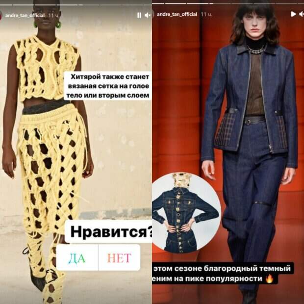 Известный украинский дизайнер Андре Тан рассказал о новых трендах осеннее-зимнего периода 2021 года Известный украинский дизайнер часто показывает на своей странице в социальной сети модные наряды в этом году, а также демонстрирует удачные луки на текущий сезон. В этот раз в разделе Стори дизайнер показал несколько наглядных примеров с нарядами, которые подойдут на осень-зиму этого года.