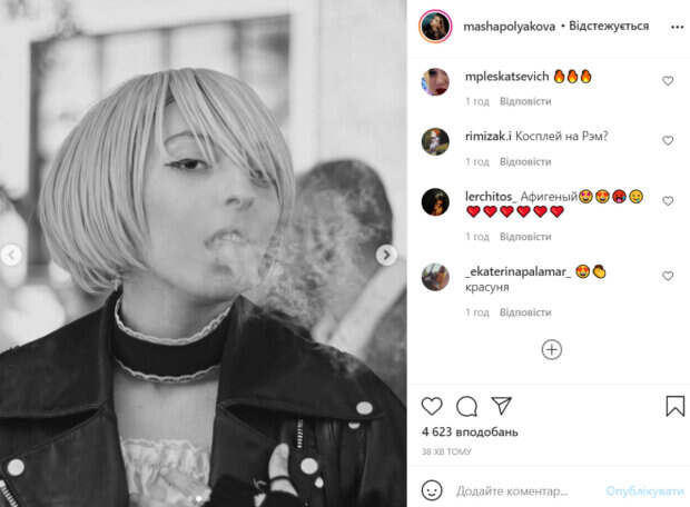 Старшая дочь Оли Поляковой Мария удивила кардинальной сменой имиджа Как пишет Politeka.net, 16-летняя Маша подготовила яркий образ на фестиваль комиксов Comic Con Ukraine 2021. Девушка надела парик с короткими светлыми волосами. Она эффектно позировала для портрета, выдыхая дым. «Как вам мой образ на комикон», - подписала фото девушка.