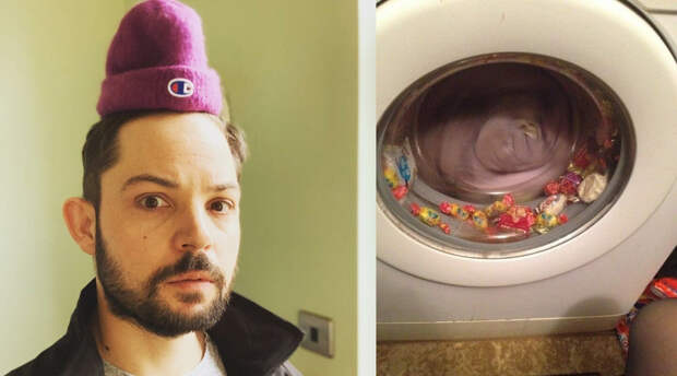 Вот посмотрите сами. Хорошие были носочки, шерстяные. Будут внуки – пригодятся Подушка-антистресс вызвала большой стресс! Фирменные кроссовки не выдержали Подушка не хотела быть чистой Зато чистота идеальная Так вот куда пропадают носки! Зато чистый, белый такой Теперь в комнате будет намного больше света Ну ничего, будем по старинке – бегать к телику кнопки переключать Никто не мог вспомнить, что это было до стирки Не пугайтесь! Это просто футболка с принтом Одноразовый свитер от кутюр А что? И так неплохо Был светло-серый, стал серо-камуфляжный Еще одна подушка самоубилась Зато теперь мы знаем, что было внутри мишки Это была глупая идея! Так вот где у дочки была заначка с конфетками Безупречно чистый паспорт Когда взяли порошок для ручной стирки То же Все носки на месте – ни один не пропал!
