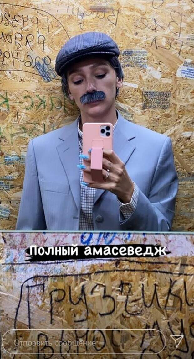На новых кадрах Ивлеева предстала в мужском костюме и кепке. Образ дополнили «седые» волосы и маска для Инстаграм в виде усов. «Так, я работаю сегодня под прикрытием, поэтому если меня увидите, не палите», - обратилась к подписчикам ведущая. К сожалению, узнать, как фанаты Ивлеевой отреагировали на такую кардинальную смену имиджа, невозможно, так как в разделе Сториз нет комментариев. Однако, можно предположить, что многие были удивлены таким преображением. До этого мы писали, что Ивлеева удивила внешностью после тяжелой болезни. Свежее видео, на котором Настя поздоровалась с поклонниками, появилось у нее в Инстаграм. Звезда выглядела посвежевшей и похорошевшей, что очень удивило поклонников, ведь совсем недавно артистка переболела китайским вирусом. Теперь красотка позировала в автомобиле со свежей прической и маской на лице. Она выглядела превосходно, хоть ее волосы и не были уложены как надо. Напомним, Ивлеева из «Орла и Решки» в дерзком мини показал, чем ее наградила природа. Как сообщала Politeka, безбашенная Настя Ивлеева зажгла с подругой из "Орла и решки" без белья: "Бритни Спирс в шоке". Также Politeka писала, что растрепанная Ивлеева из «Орел и решка» потрясла внешностью после болезни: «Что у тебя с…».