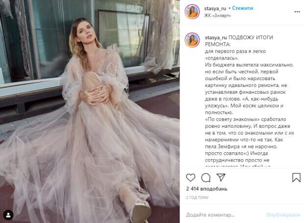 В подписи актриса рассказала о тяжелом ремонте у себя дома, который, к счастью, уже позади: "Подвожу итоги ремонта: для первого раза я легко «отделалась». Из бюджета вылетела максимально, но если быть честной, первой ошибкой и было нарисовать картинку идеального ремонта, не устанавливая финансовых рамок даже в голове. «А, как-нибудь уложусь». Мой косяк целиком и полностью. Ожидание/Реальность. РЕМОНТ, который хотелось закончить максимум за 4 месяца, занял ГОД. В основном переделка ошибок и немного пандемия. Этот опыт меня подтолкнул на мысль: а можно ли было от всего этого перестраховаться? Обращаться в конторы «под ключ»?" Пользователи кинулись обсуждать увиденное: некоторые вспомнили в комментариях собственный опыт с ремонтом, а другие восхитились Настиным образом: "Не переживай, превышение сметы при ремонте есть у всех, даже при наличии проекта" "В первую очередь, это куча нервов, уйма потерянного времени и денег, но результат заставляет обо всём забыть" "Ремонт для меня это апокалипсис