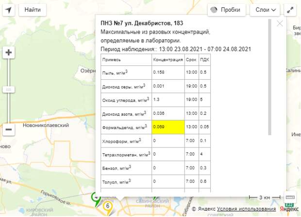 метр. Предельно допустимая концентрация загрязняющего вещества составляет 0,05 мг/куб. метр. скриншот ПНЗ №6 на ул. Степана Халтурина, 10 зарегистрировал формальдегид на уровне 0,073 мг/куб.метр. Предельно допустимая концентрация оказалась превышена на 0,023 мг/куб.метр. скриншот Данные мониторинга представлены за период наблюдения с 13:00 23 августа по 07:00 24 августа. В Казани в конце прошлой недели зарегистрировали повышенную концентрацию оксида углерода и формальдегида, в Набережных Челнах — фенола, формальдегида, диоксида азота и аммиака, а в Нижнекамске — ксилола и аммиака. В Гидрометцентре Татарстана объяснили превышение ПДК загрязняющих веществ 20, 21 и 23 августа синоптическими и метеорологическими условиями, которые сложились в республике 20 и 21 августа.