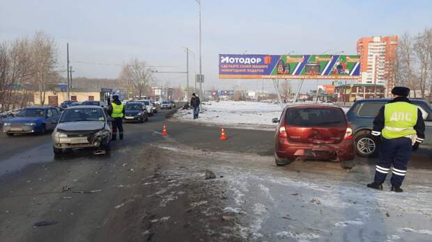 В Нижнем Тагиле на Черноисточинском шоссе сегодня около 14 часов автомобиль «Рено Сандеро» столкнулся с попутной легковушкой, после чего врезался в стоящую «Ниву». В аварии пострадала 12-летняя девочка, дочь водителя из «Рено».