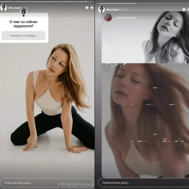 Телесный топ с тонкими лямками и вырезами, а также классически брюки гармонично сочетались между собой без лишней откровенности и дерзости. Макияж в нюдовых тонах и распущенные локоны хорошо дополнили образ артистки. В подписи к одному из своих кадров Кароль спросила украинцев: «О чем ты сейчас задумался?». Таким образом звезда решила немного пообщаться со своей аудиторией, чего обычно не делает и как правило даже избегает лишнего внимания. Также популярная украинская певица похвасталась снимками на своей станице в Instagram днем ранее. Тина Кароль позировала в том же светлом топе и черных расклешенных брюках. Чтобы ноги казались еще длиннее, артистка обула изящные босоножки на шпильке. Образ дополнил макияж с акцентом на глаза и легкая укладка. "Мне нравится быть для тебя..." - подписала кадры певица. Кароль показала несколько фото, а также бэкстейдж съемки. Напомним, Кароль в кожаном наряде неожиданно появилась в компании известного певца: "Молодая кровь" Как сообщала Politeka, Тина Кароль рассказала о боли, которую терпит каждый день, как Мишина: «Это моя трансформация» Также Politeka писала, что Тина Кароль намекнула, есть ли у нее любимый мужчина: "Много сменилось. .."