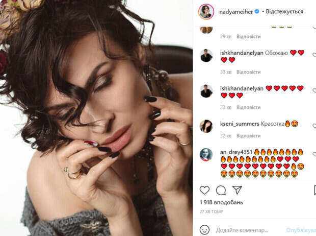 У себя в Инстаграм певица объявила о новых выступлениях, опубликовав яркий снимок из новой фотосессии. 39-летняя артистка продемонстрировала свою идеальную внешность без малейших признаков старения. Вечерний макияж без излишеств придал ее лицу особого шарма. «Приветствую! И приглашаю окунуться в мир чувственности, чувственной музыки», - подписала фото звезда, проанонсировав свои концерты. В комментариях артистке оставили массу приятных слов. «Роковая женщина», «Божественная», «Cмотрю с Вашим участием фильм», «Шикарная», «Ой, обожаю вас! Потрясающе!», - пишут пользователи сети. Ранее мы писали, что Надежда Мейхер продемонстрировала своим поклонникам черное свободное платье с огромным вырезом на спине, украшенное черепом. Как известно, певица является дизайнером собственной линейки одежды для фигуристых дам. У себя в Инстаграм она регулярно публикует наряды из своих коллекций. Напомним, что 39-летняя Мейхер в тесном корсете показала, как женщинам чувствовать себя уверенней: кадры с красоткой из ВИА Гры. Как Politeka писала, что экс-ВИА Гра Мейхер поразила кадрами жесткой ссоры с "мужем-тираном": "Старый хрыч!". Также Politeka сообщала, что Мейхер публично осадила Полякову, скандал получил продолжение: "За Олю не буду распоряжаться, но. ..".