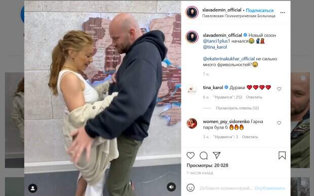 Певица при этом одета в стильное белоснежное платье в обтяжку и куртку. В начале видео Кароль и Демин просто эмоционально танцуют под музыку, однако певица со временем начинает показывать все более соблазнительные движения. В какой-то момент она начинает танцевать, прижимаясь к Демину, а дальше и вовсе задрала его свитшот, обнажая живот ведущего. После этого Демину пришлось быстро сбежать, а Тина весело рассмеялась. «Новый сезон «Танців з зірками» начался. Екатерина Кухар, не сильно много фривольностей?», - подписал видео Демин. Балерина ответила на это в комментариях, написав: «В самый раз!». Кароль также отметилась под постом, написав комментарий со словом «Дураки» и кучей сердечек. Поклонники бурно отреагировали на эту публикацию. «Хорошая пара была бы», «Это пожар, какие кайфовые», «И никакие Баланы не нужны. Кайфовые», «Воо Чудит Тина», «Шалунишка», «Хулиган Тина в деле», - пишут люди. Напомним, Кароль "потеряла" платье на сцене и попала под народный гнев: "Обман, везде обман". Как сообщала Politeka, Тина Кароль неожиданно дала понять, что история с Даном Баланом уже в прошлом: "Дон... Дэн?". Также Politeka писала, что влюбленная Тина Кароль появилась в белоснежном платье рядом с известным ведущим: «Сводит меня с ума».