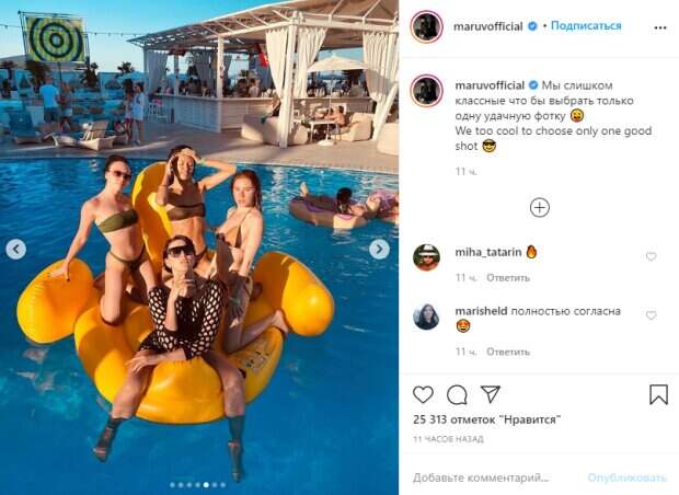 Украинская певица MARUV показала, как веселится с девушками на море Не так давно певица показала, как отправилась на отдых в Одессу и успела порезвиться с друзьями на море в летнем образе. В этот раз Анна предстала в черном бикини и надела поверх него соблазнительную сеточку, сообщает Politeka. Похоже, звезда не скучает без концертов и все свое свободное время решила проводить с близкими.