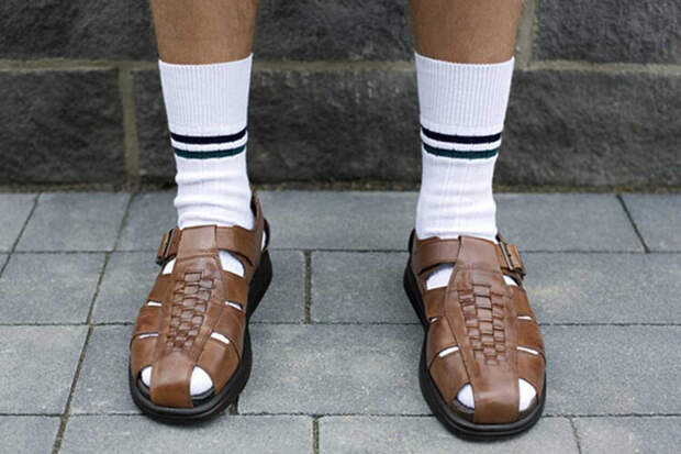 Еще недавно было принято высмеивать тех, кто решался ради удобства надеть носки с сандалиями. По такому своеобразному виду всегда можно было узнать мужчин, рожденных в СССР: они заправляли футболку в мешковатые джинсы с ремнем и надевали закрытые коричневые сандалии с носками. Часть более молодого поколения, уже далекого от советских представлений о моде, все равно унаследовала от родителей эту любовь к сочетанию сандалий и носков.