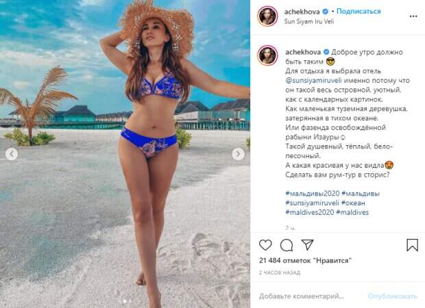 Телеведущая Анфиса Чехова никогда не стеснялась своих пышных форм, выставляя напоказ "дары природы" Как передает Politeka.net, 42-летняя звезда телеэкранов опубликовала свежие фото в своем микроблоге в Инстаграм, на которых покичилась фешенебельным отдыхом на Мальдивах. Счастливая и разнеженная Чехова покрутилась перед камерой в синем бикини, идеально подчеркнувшем ее аппетитную фигуру.