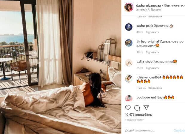 Волосы девушки были распущены, они нежно спадали на обнаженную красоту. За окном виднелось море и пальмы. Судя по всему, Ульянова отдыхала за границей. Девушка взбудоражила откровенным фото, оставив не менее пикантную подпись. «Я буду по тебе скучать», - загадочно подписала фото звезда. За короткое время пост Ульяновой собрал более 10 тысяч лайков. В комментариях ей оставили массу приятных слов. «Идеальное утро для девушки», «Как картинка», «От всего сердца желаю тебе любви. Ты красотка», «очень красивое фото», «Красота», «Замечательного отпуска», «Самая лучшая», «Шикарная!», «Вау! Огонь!», - пишут пользователи сети. Как известно, Даша Ульянова стала победительницей в последнем сезоне шоу «Холостяк». Однако молодая гимнастка не смогла построить любовь с Максом Михайлюком из-за измен на проекте. Вскоре Макс нашел себе новую девушку за рамками проекта, а Даша в одном из интервью признавалась, что у нее есть новый мужчина. Напомним, что Даша Ульянова восхитила безупречными ногами в мини-шортах: «Боже, от ушей…». Как сообщала Politeka, Даша Ульянова впервые показала своего тайного любовника: "Старше на 20 лет...". Также Politeka писала, что Даша Ульянова в "невидимых" шортиках подразнила кокетливым видом: "Скучали? ".