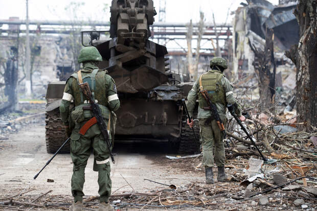 На территории освобождённого от нацистов металлургического комбината пока ещё очень опасно. Работа по разминированию и зачистке территории ведётся круглые сутки.