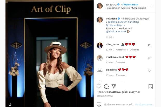 net. Катя Осадчая в этот раз не стала снимать сюжет или разговаривать со знаменитостями, а просто решила окунуться в мир искусства и вечной красоты, чтобы насытиться положительными эмоциями и впечатлениями. Жена Юрия Горбунова посетила Национальный художественный музей Украины, который находится в Киеве, а для такого мероприятия она подобрала идеальное сочетание цветов для своего наряда. Катя Осадчая еще раз продемонстрировала отличный вкус и ощущение стиля. Для похода в музей несравненная телеведущая выбрала классические черные брюки и очень стильную и одновременно лаконичную блузу с оригинальными рукавами-фонариками. Блузка нежного молочного оттенка была скроена в формате корсета, который аккуратно акцентировал грудь Осадчей благодаря симметричным складкам. Крой этой одежды ненавязчиво обнажил нежные плечи телеведущей и подчеркнул открытую зону декольте с манящей ложбинкой в ней. Катя Осадчая распустила свои русые волосы, выложив их волнами по обоим плечам, а завершили лук стильная соломенная шляпка с черной лентой и, как всегда, очаровательная улыбка звезды, которая уже давно стала ее визитной карточкой. "Невероятная экспозиция в @namu.museum #artofclip @vancleefarpels Красота в каждой детали",- написала под своей фотографией Катя Осадчая. Ее поклонники отметили невероятную красоту телеведущей и даже сравнили ее с известным полотном Леонардо Да Винчи "Мона Лиза". Напомним, соблазнительная Осадчая блеснула формами в полупрозрачном платье, Горбунов оценит: "Как вам изменения?" Как сообщала Politeka, неутомимый Горбунов осчастливил Каменских на глазах у Потапа и Осадчей: "Солнышко, ты лучший..." Также Politeka писала, что импозантный Олег Винник поведал о свадьбах и секретном хобби: "Когда начинаешь ее натирать..."