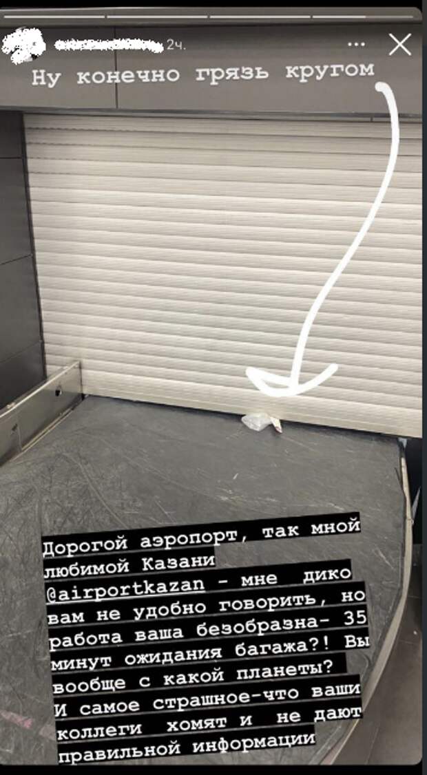 Одна из посетительница международного аэропорта «Казань» пожаловалась на обслуживание и грязь. Об этом девушка рассказала в своем Instagram-аккаунте. «Работа ваша безобразна — 35 минут ожидания багажа?!», — возмутилась она, обратив внимание, что проблемы возникли и с отношением к ней персонала аэропорта.